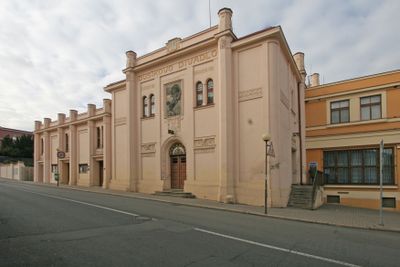 The Dusíkovo divadlo theatre stands as a cultural venue featuring a main stage that presents theatrical productions, concerts, and community events throughout the year.