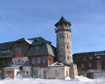 Construction of the first wooden tower began in 1817 for visitors of Karlsbad spa, later replaced by the stone Kaiser-Franz-Josephs-Turm between 1883 and 1884.