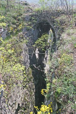 Archaeological discoveries near the arch include prehistoric animal carvings on slate plates found in the adjacent Děravá cave, dating from Paleolithic times.