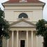 The Church of the Resurrection of Christ exhibits classical symmetry with grand columns extending across its facade and a proportional pediment at its summit.