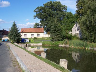 Kamenná kazatelna u kostela svatého Jiří v Hradešíně