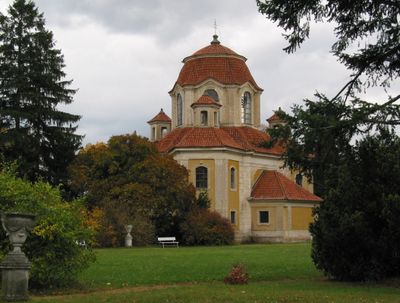 Between 1705 and 1707, architect Jan Santini Aichel created this chapel as his first independent project for the Benedictine nuns' summer residence.