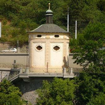 Built in 1635 for vineyard workers and raftsmen to pray for safe passage through dangerous sections of the Vltava River.