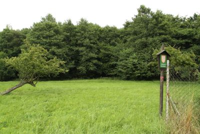 Rozbitý pamětní kříž u silnice 13 na dolním konci Libouchce