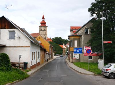 Sculpture of the Holy Deacons of George and Agapit on the way to the Church of St. Peter and Paul in Mimoň