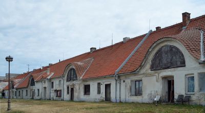 The estate maintains original agricultural structures that demonstrate the connection between farming operations and aristocratic architecture in South Moravia.