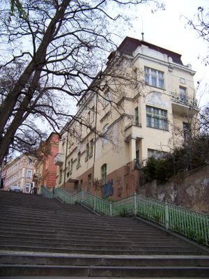 The Nuselské schody consists of fourteen sections with 182 steps, connecting Šafaříkova street with the lower part of Bělehradská street in Prague.