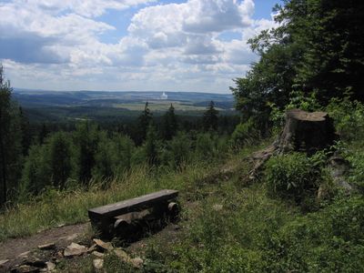 Nature park Džbán is a protected area spread across a chalk plateau with valleys spanning three districts. The highest point reaches 536 meters (1,760 feet) and the park is approximately 70 percent covered by forest.