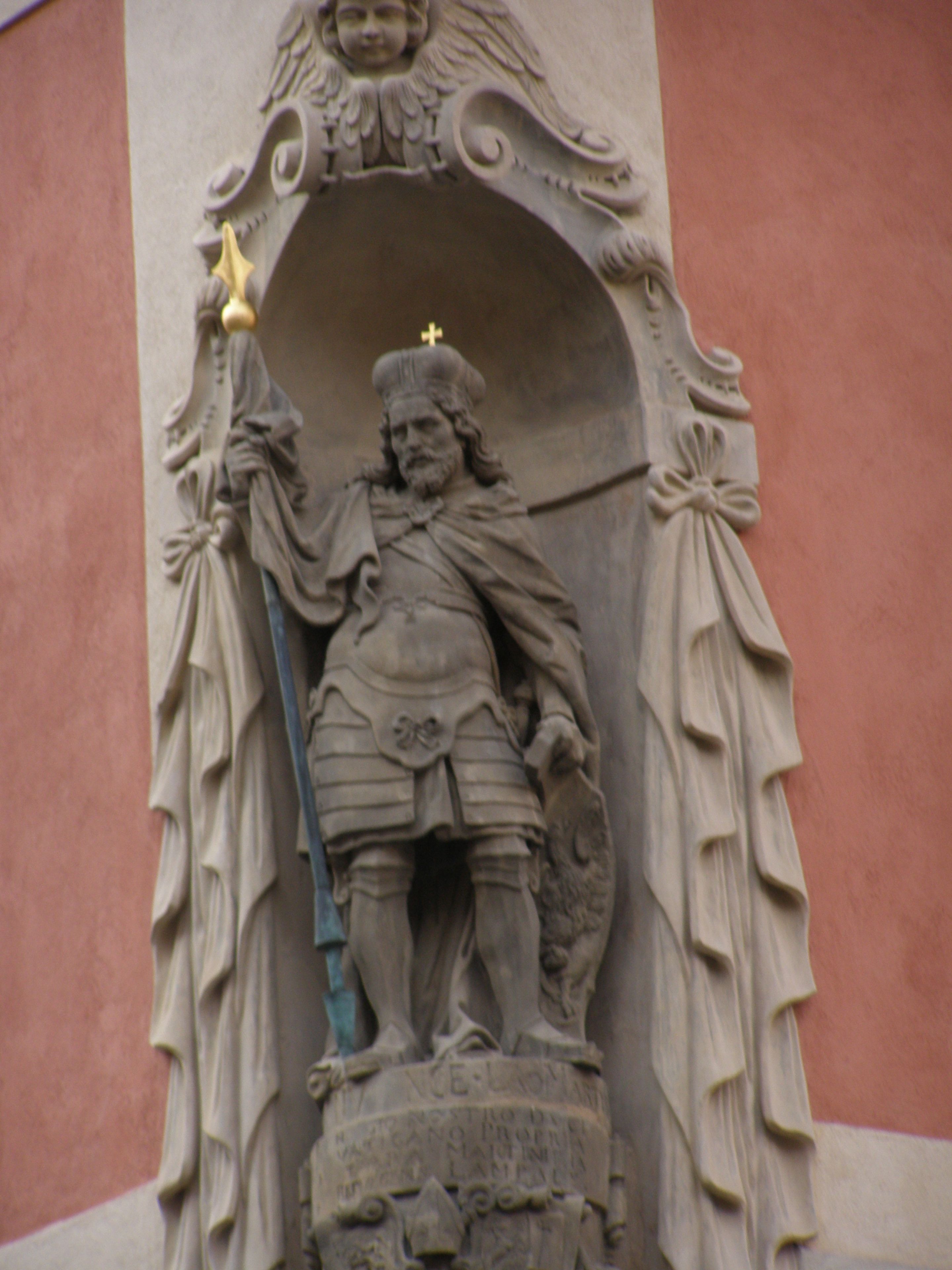 Sloup se sochou na Prašném mostě v Praze