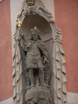 The statue bears an inscription requesting protection for the Czech people and serves as a meeting point for public gatherings and national celebrations.