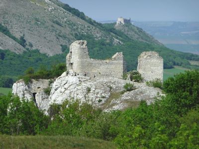 The castle ruin forms part of the Tabulová National Nature Reserve within the Pálava Protected Landscape Area, located 20 kilometers northwest of Břeclav.