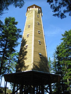 The observation platform remains open throughout the year and requires climbing multiple flights of stairs to reach the viewing area.