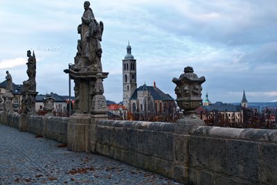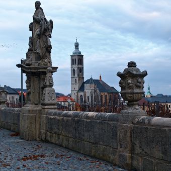 Sousoší na terase před jezuitskou kolejí, Baroque sculptures at Jesuit College terrace in Kutná Hora, Czech Republic.