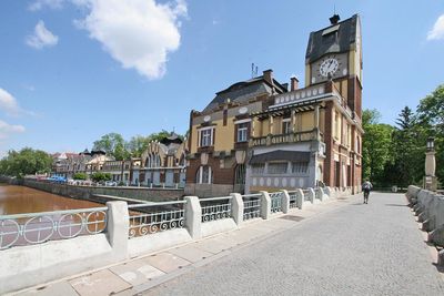 Hučák hydroelectric power plant, Art Nouveau hydroelectric power plant on River Elbe in Hradec Králové, Czech Republic.