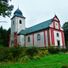 The church occupies an elevated position at coordinates 49.623704, 15.248765, providing clear views of the surrounding Czech countryside from its location.