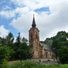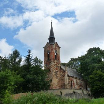 The Church of Saint George is a stone building with a tall spire designed in the Gothic style typical of the region. The structure features pointed arch windows and intricate stonework characteristic of traditional Czech church architecture.