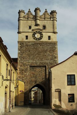 The Gate of Our Lady reaches 24 meters in height and features a Renaissance superstructure integrated into the historical city walls of Jihlava.