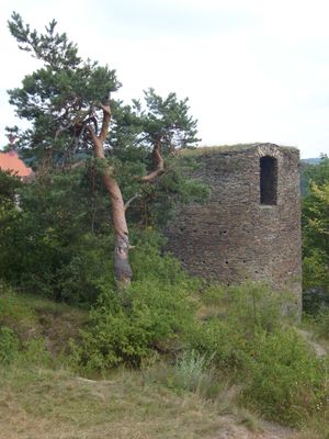 The fortress was founded in the 15th century as a guardpost for trade routes crossing Bohemia. It later lost military importance and declined into the ruined state visible today.