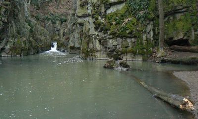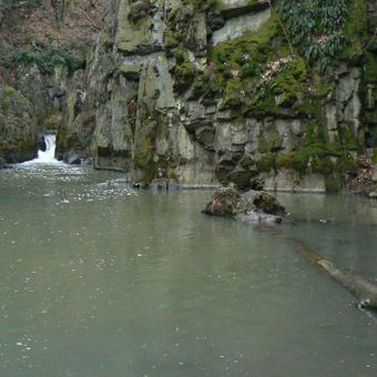 Skryjský vodopád, Waterfall near Podmokly and Skryje, Czech Republic.