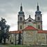 The basilica features two prominent towers with onion-shaped domes and three rectangular side chapels arranged along a single-nave layout.