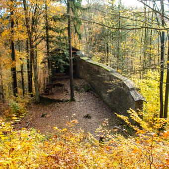 Visitors can reach the castle ruins via marked hiking trails from Dolní Štěpanice village, with informational panels explaining the site's layout and features.