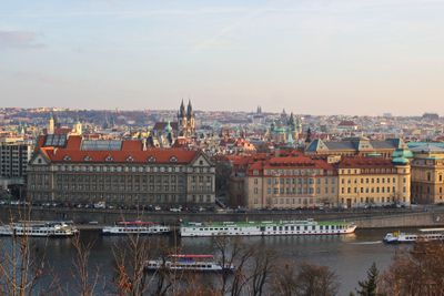 The Dvořákovo nábřeží extends along the Vltava River in Prague's Old Town, providing direct views of Prague Castle and the Hradčany district.