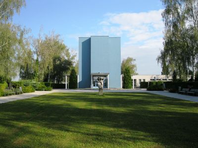 The crematorium stands within the Ústřední hřbitov Neředín cemetery complex, featuring architectural elements that reflect regional funeral traditions and practices.