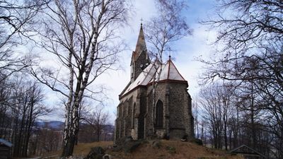 Church of Our Lady of Sorrows, Gothic Revival church on Boží hora, Žulová, Czech Republic
