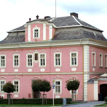 Kamenná plastika v průčelí kostela Narození Páně v Opočně