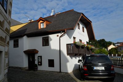 Statue of Saint John of Nepomuk on the head of Edvard Beneš Bridge in Český Krumlov