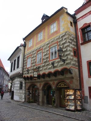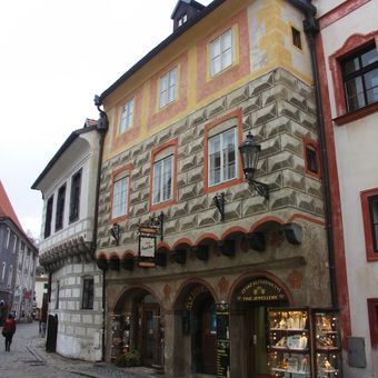 Mostní přechod mezi zámeckou věží a čp. 58 v Českém Krumlově-Latráně