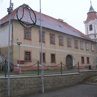 Torzo pamětního kříže u hřbitova v Očihově vlevo