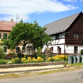 Pamětní deska Loise Zimmermanna na domě na návsi v Orasíně