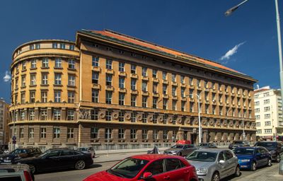 Built in 1928 by architect Alois Dryák, the palace initially served as an administrative center for tobacco packaging and distribution operations in Prague.