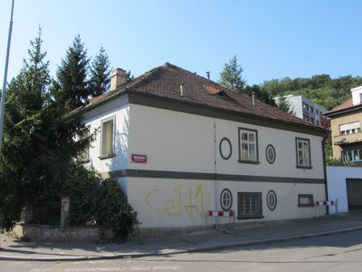 Pamětní deska Slávky Kampové u schodů z Plzeňské ulice ke Klimentce