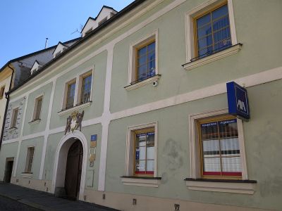 Socha Přemysla Otakara II. na zdi spořitelny na náměstí Míru v Klatovech