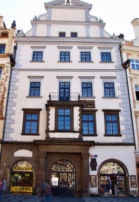 The building contains original medieval structural elements while continuing to serve modern functions in the heart of Prague's Old Town.