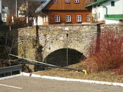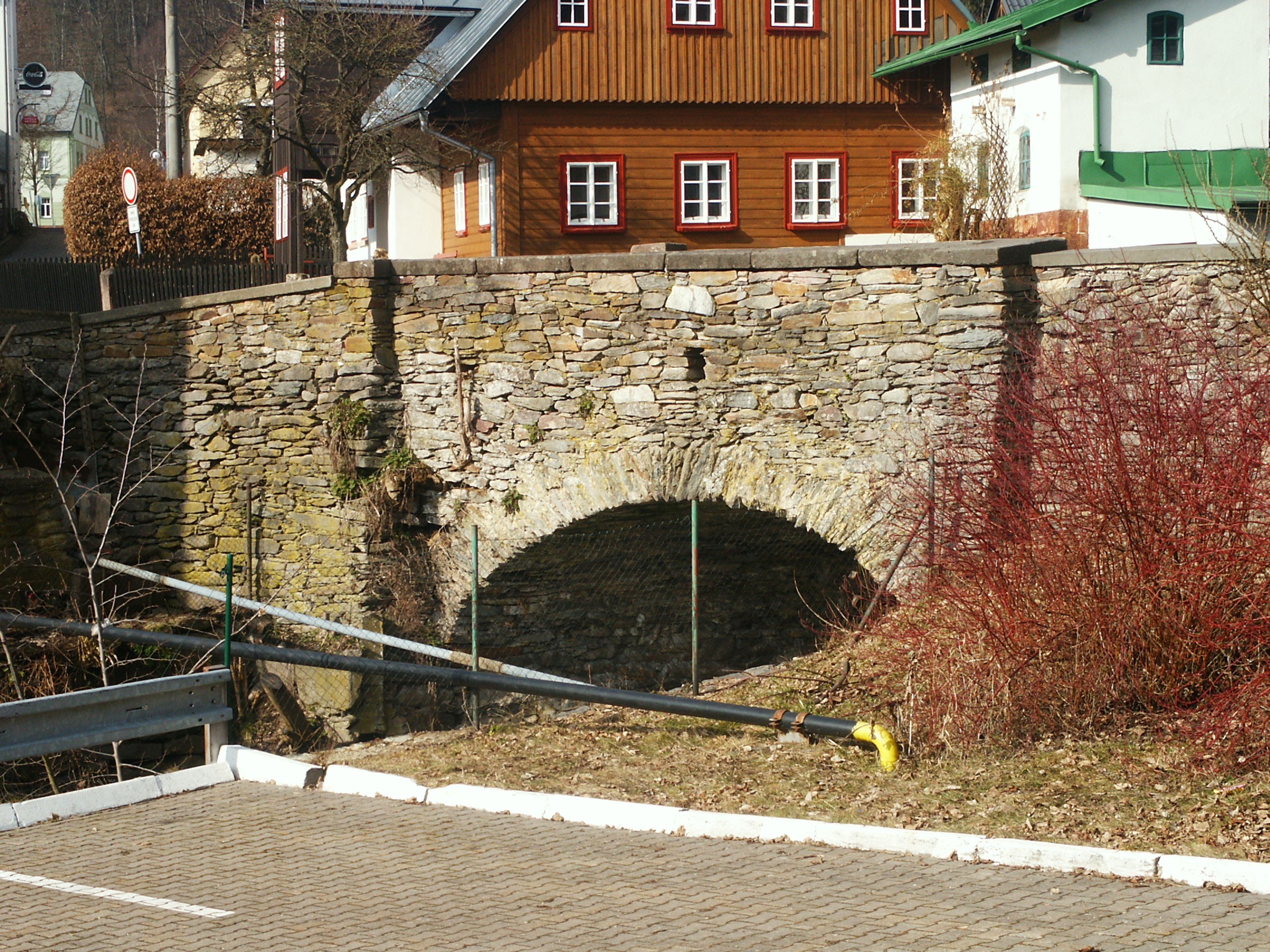 Stone bridge in Černý Důl, kamenný klenutý most přes Čistou v městysi Černý Důl, okres Trutnov, poblíž penzionu Jáma