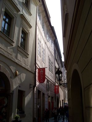 Pamětní deska Egona Erwina Kische v Melantrichově ulici v Praze