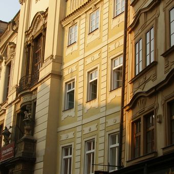 Relief of a woman on the corner of Husova and Karlova streets