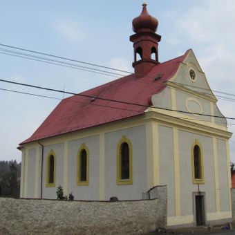 The interior contains religious artifacts and architectural elements that represent the craftsmanship and artistic traditions of late 18th-century Czech design.