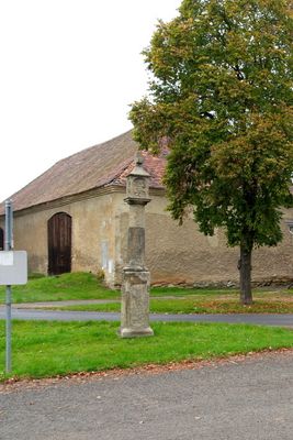 Sloup svatého Jana Nepomuckého u polní cesty jižně od Kostelce nad Ohří