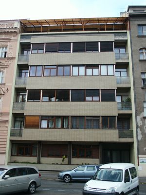 Pamětní deska Wabi Daňka na domě Milady Horákové 382/75 na Letné