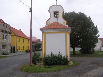 Kříž v uličce za kostelem ve Vrbně nad Lesy