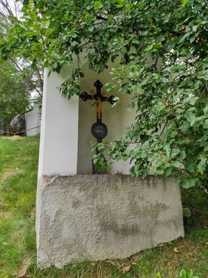 Výklenková kaplička pod kostelem, výklenková kaple s křížem v obci Ktiš