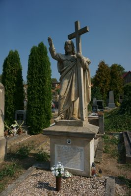 Socha poutníka na náhrobku rodiny Ehmigovy