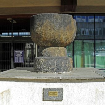 Středověká křtitelnice v atriu Magistrátu v Mostě