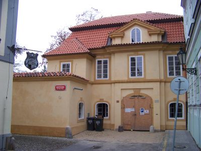 Socha svatého Floriana na nároží Nosticovy a Pelclovy ulice v Praze