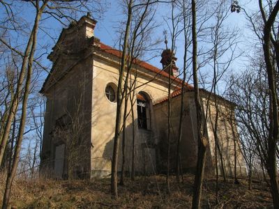 Construction of the church occurred between 1763 and 1765, based on plans attributed to architect Kilián Ignác Dientzenhofer, replacing an earlier chapel at the site.