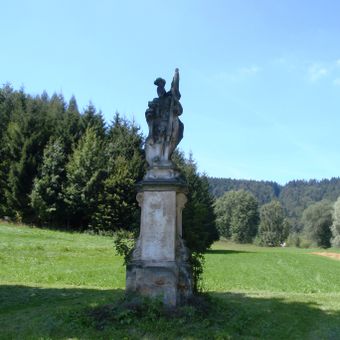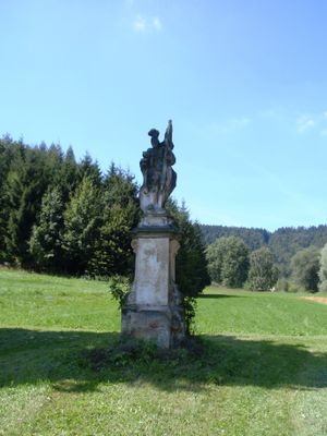 Kříž v Helvíkově před kaplí Nanebevzetí Panny Marie